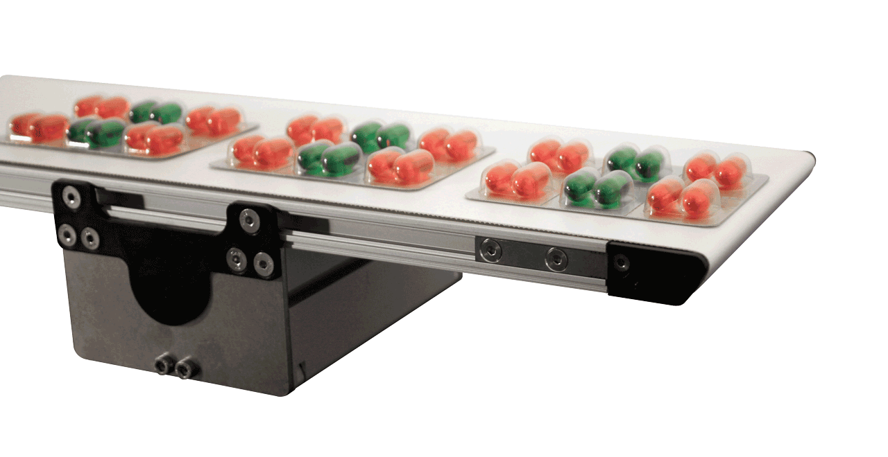 A longtime problem with conveyors serving the medical and pharmaceutical industries has been their size. The components being produced are small, lightweight, and many of the spaces where conveyor systems need to be positioned within a machine for in-feed/out-feed service are extremely tight. Tight spaces require small conveyors, however, there just hasn’t been many viable options available to companies. North American conveyor manufacturers have traditionally shied away from this market for a variety of reasons, mainly due to the amount of research and development required to make a suitable product offering for this market. When it comes to design, conveyor manufacturers historically over-design their products to help increase performance, e.g. bigger bearings, more robust frame, etc. It’s probably been a case of overkill in terms of design for some of the industries and applications that they’re building for. But, for those other industrial markets, bigger is often better – so this philosophy has worked. Going small is something new, and many likely have not wanted to invest the time and effort for this market.
